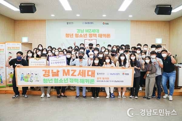 [경남도민뉴스] (재)경남연구원(원장 직무대행 김태영)에서 운영 중인 경남청년센터(센터장 직무대리 박정의)는 도내 청년 및 청소년들의 도정 참여 역량 강화와 정책 참여 환경 조성의 취지로 개최된 ‘경남 엠지(MZ)세대 청년·청소년 정책 해커톤’이 성료됐다고 밝혔다.