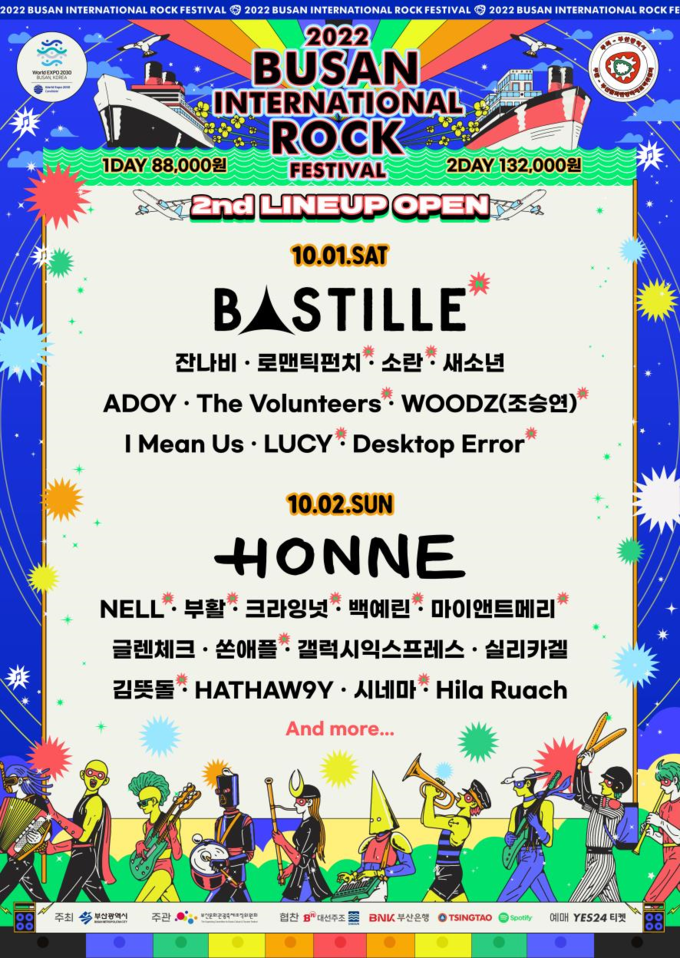 ‘바스틸(Bastille)’은 행사 첫날인 10월 1일 헤드라이너로 나서며, 2017년 이후 5년 만에 한국에서 무대를 갖는 것이라 국내 팬들의 많은 기대와 관심을 모을 것으로 예상된다.