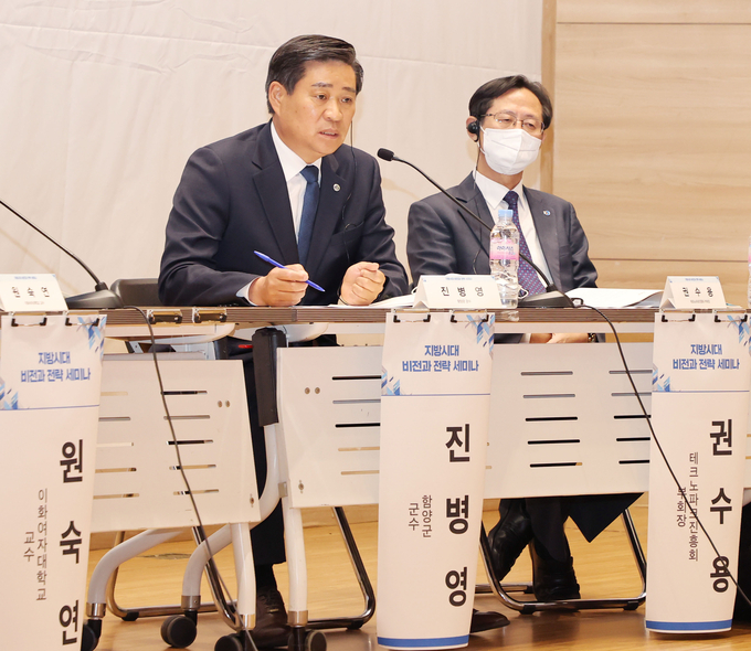 [경남도민뉴스] 10월 17일 국회의원회관 대회의실에서 열린 ‘지방시대 비전과 전략세미나’에 국내외 전문가 15명이 참석한 가운데, 진병영 함양군수는 지방자치단체장으로써 유일하게 토론자로 초청받아 지방소멸 대응과 지역균형발전 방향을 함께 논의하였다.