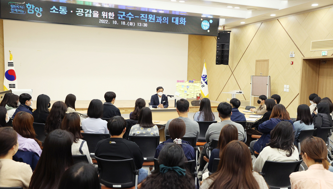 [경남도민뉴스] 함양군은 10월 18일부터 20일까지 군수-직원간의 대화의 시간을 가질 예정이라고 밝혔다.