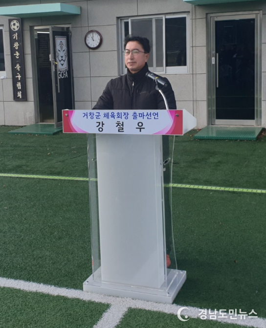 [경남도민뉴스] '체육 군수'를 뽑는 거창군체육회장 선거에 무소속으로 경남도의회의원, 거창기초의회의원을 지낸 강철우 전의원이 23일 거창스포츠파크 다목적구장에서 거창군 체육회장선거에 출마선언했다.