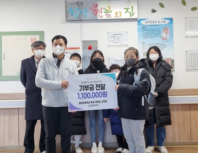 [경남도민뉴스] 함양초등학교(교장 노명환)는 12월 21일 중증장애인 거주시설 함양연꽃의집에 알뜰바자회 성금 110만원을 기탁했다고 밝혔다.