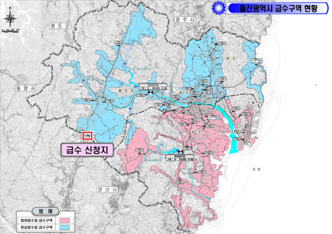 울산시는 관련 법령 검토와 유사사례 등을 조사한 후 지난 11월 환경부에 방문해 협의를 거쳐 「수도법」 제40조에 따라 ‘관할 구역 외의 급수’를 결정하였다.