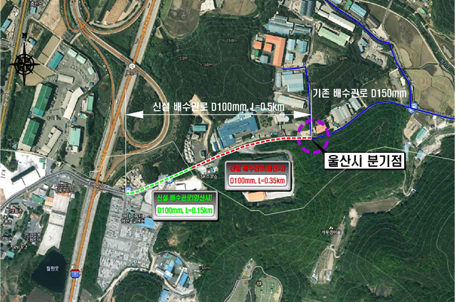 양산시에서 현대자동차 양산출고센터에 상수도를 공급하기 위해서는 경부고속도로를 가로질러 관로를 설치해야 하는 어려움이 있어 사실상 상수도 공급이 불가능한 상황이었다.