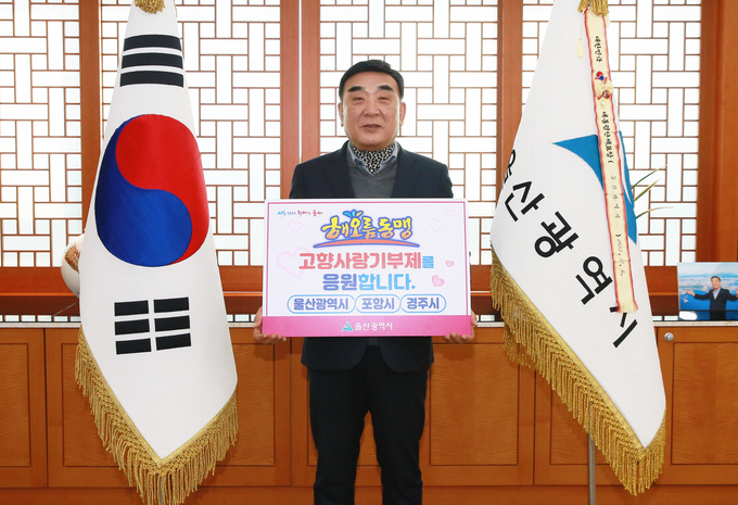 김두겸 시장은 “오늘 기부행사가 울산, 포항, 경주 시민을 비롯한 많은 분들이 고향사랑기부제의 취지를 공감하고 적극적으로 동참하는 계기가 되길 기원한다.”며 “고향사랑기부제의 조속한 정착으로 인구감소 등으로 어려움이 있는 지방에 활력이 되기를 바란다.”라고 말했다.