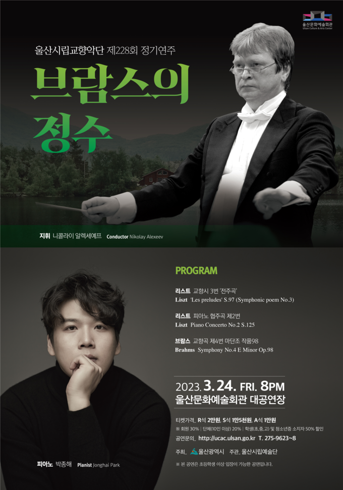 [경남도민뉴스] 울산시립교향악단 제228회 정기연주회 ‘브람스의 정수’가 오는 3월 24일(금) 오후 8시 울산문화예술회관 대공연장에서 열린다.