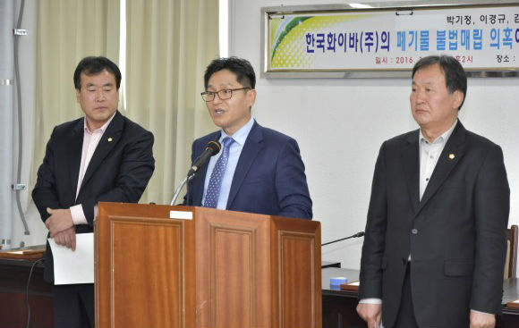 함양군의회 김윤택 의원, 박기정 의원, 이경규 의원등 3명은 지난 7일 기자회견을 열고 “한국화이바(주)가 폐유리섬유를 함양 수동 산업단지내에 불법매립 해 왔다”며 수사기관과 함양군의 철저한 수사 및 조사를 촉구하고 한달 전 제보와 증언을 접수하여 면밀한 검토와 숙고한 결과 사실이라는 확신을 가졌고 도저히 침묵할 수 없었다”며 기자회견을 연 배경을 설명했다.