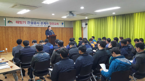 교육 참가자들은 김내현 지역발전과장으로부터 산삼휴양밸리 조성사업에 대한 현황을 청취하고, 국민안전처에서 홍보하는 동영상을 시청하며 해빙기 관련 재해사례와 대처방안을 알아보고, 감독공무원과 현장대리인 등 관계자와의 긴밀한 협력체계 구축의 중요성을 재확인했다.