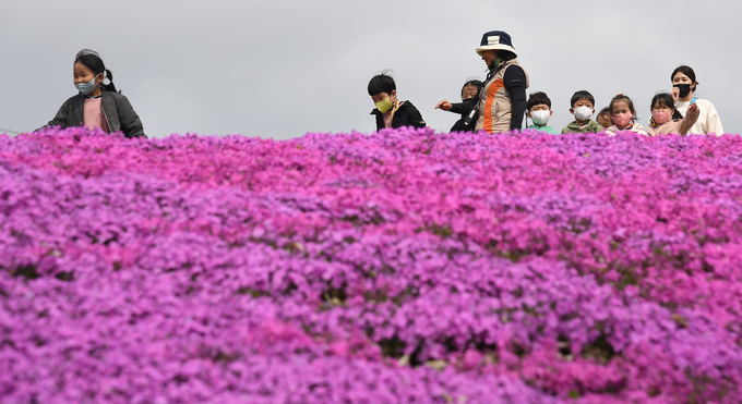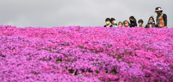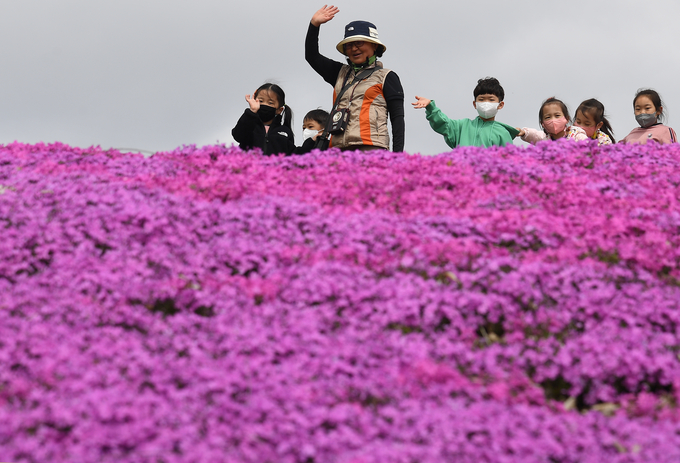 [경남도민뉴스] 6일 경남 거창군 남상면 거창창포원에 봄 향기를 가득 머금은 꽃잔디가 만개해 눈부신 분홍색 빛을 발산하고 있다