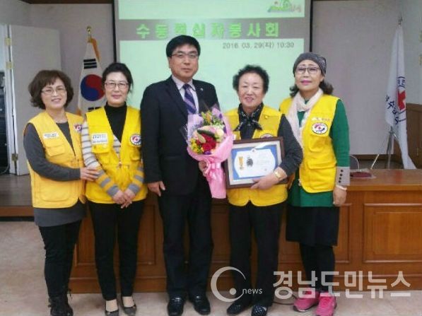 수동면 적십자봉사회는 지난 29일 오전 수동면사무소 회의실에서 월례회를 열고 현안을 논의한 뒤, 적십자인도주의 운동에 적극 참여하고 고난경감과 복지증진에 크게 기여한 공로로 상을 받은 조정희씨와 함께 기쁨을 나눴다.