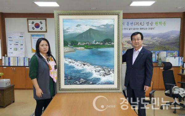 거창군 위천면(면장 박완묵)에 아운 김미영 화가가 유화 ‘위천’을 지난 5일 기증했다.