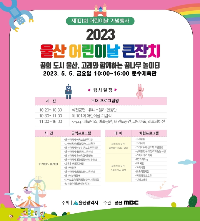 이날 행사는 식전공연, 아동권리헌장 낭독, 모범어린이 표창, 축하공연, 체험행사 등으로 진행된다.
