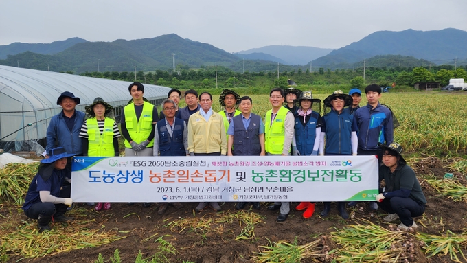 [경남도민뉴스] 농협 거창군지부(지부장 이태용)는 지난 6월 1일 남거창농협(조합장 허원길) 및 법무부 거창준법지원센터(센터장 안종우)는 합동으로 거창군 남상면 무촌마을 최○○씨 농장을 찾아 ‘유관기관 합동 마늘 수확 일손돕기’를 실시하였다고 밝혔다.