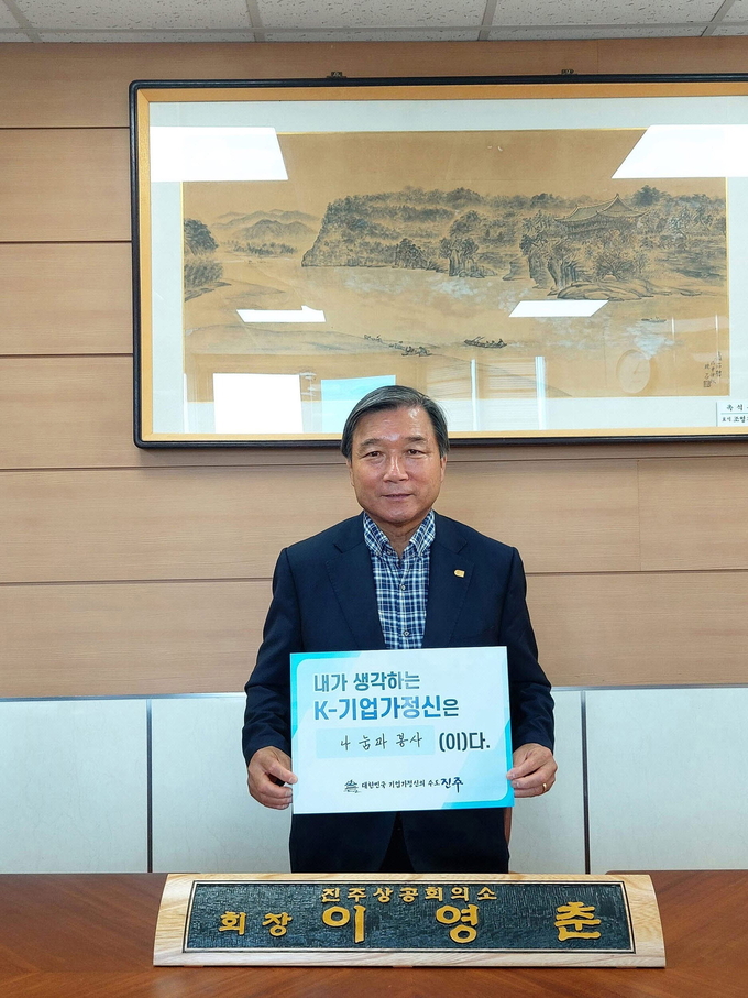 이영춘 진주상공회의소 회장은 K-기업가정신 키워드를 ‘나눔과 봉사’라 적고, “기업은 그 지역을 구성하는 한 축이다. 기업의 이윤은 지역사회에 환원되어 선순환할 때 지속 경영이 있을 수 있고 기업과 기업인이 존경받을 수 있다. 또한 ESG 경영의 하나이기도 하고 K-기업가정신의 진정한 가치이자 의미라고 생각한다”고 말했다.