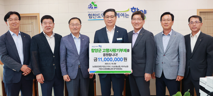 이와 함께 함양군 소재 농협중앙회 함양군지부를 비롯해 함양·안의·수동·지곡·지리산마천농협, 함양산청축협 등 7개의 농·축협 임직원 각 110명이 참여하여 거창군에 고향사랑기부금을 전달하는 등 지역 농협 간 상호 교차 기부로 진행되었다.