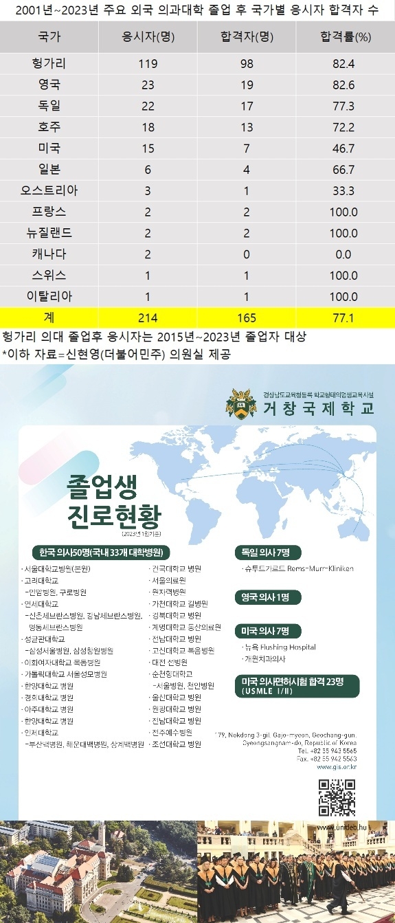 이목을 끄는 부분은 헝가리 의과대학 중에서도 거창국제학교 출신 데브레첸 의과대학 졸업자의 절대적 존재감이다.