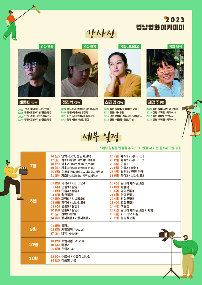 ‘2023 경남영화아카데미’는 지역 청년 인재 양성을 위해 경남도에서 추진하는 영화 전문 교육 프로그램이다.