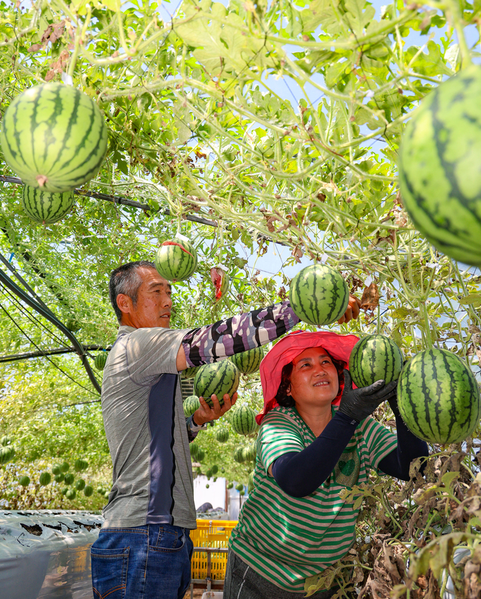 [경남도민뉴스] 11일 산청군 단성면 다온농원에서 김성환-노혜란씨 부부가 애플수박 수확에 한창이다.