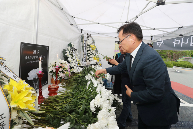 [경남도민뉴스] 홍남표 창원특례시장은 24일(월) 저녁 창원시 성산구 경남도교육청 본청 앞 주차장에 마련된 서울 서이초 교사 추모 공간을 찾아 고인의 명복을 빌었다.