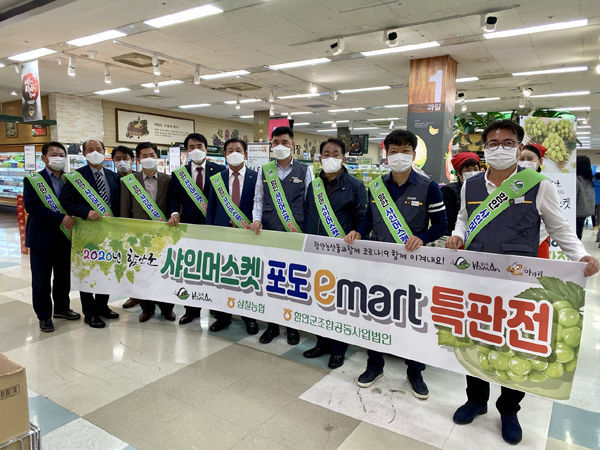 이번 행사는 지역의 새로운 소득작목으로 떠오르고 있는 씨없는 청포도 샤인머스캣이 본격적으로 출하됨에 따라 안정적인 판로 확보와 유통단계 축소를 통한 농업인의 소득증대를 위해 마련됐다.