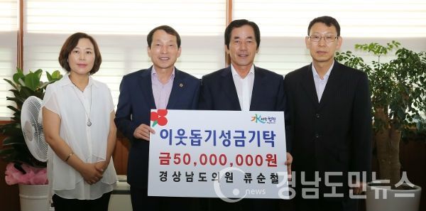 (합천/권연홍 기자) = 합천군 류순철 경남도의원은 20일 합천군(군수 하창환)을 방문하여 어려운 이웃을 위해 써달라며 올해 세비 5천만원을 전액 기탁하여 주위를 훈훈하게 하고 있다.