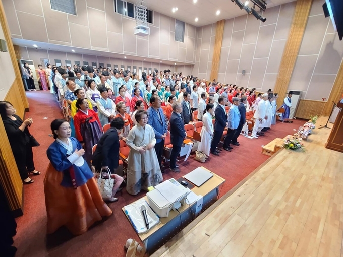 이날 오전 11시에 열린 개회식에는 함안지회 안형환 부회장과 리인숙 중국연변시조사랑회 전(前)사범의 개회선언에 이어, 국민의례, 김재순 지회장의 내빈소개와 함께 최정임 대회장의 ‘진즉, 축하드렸어야 했는데~~’ 라는 주제로 대회사가 이어졌다.