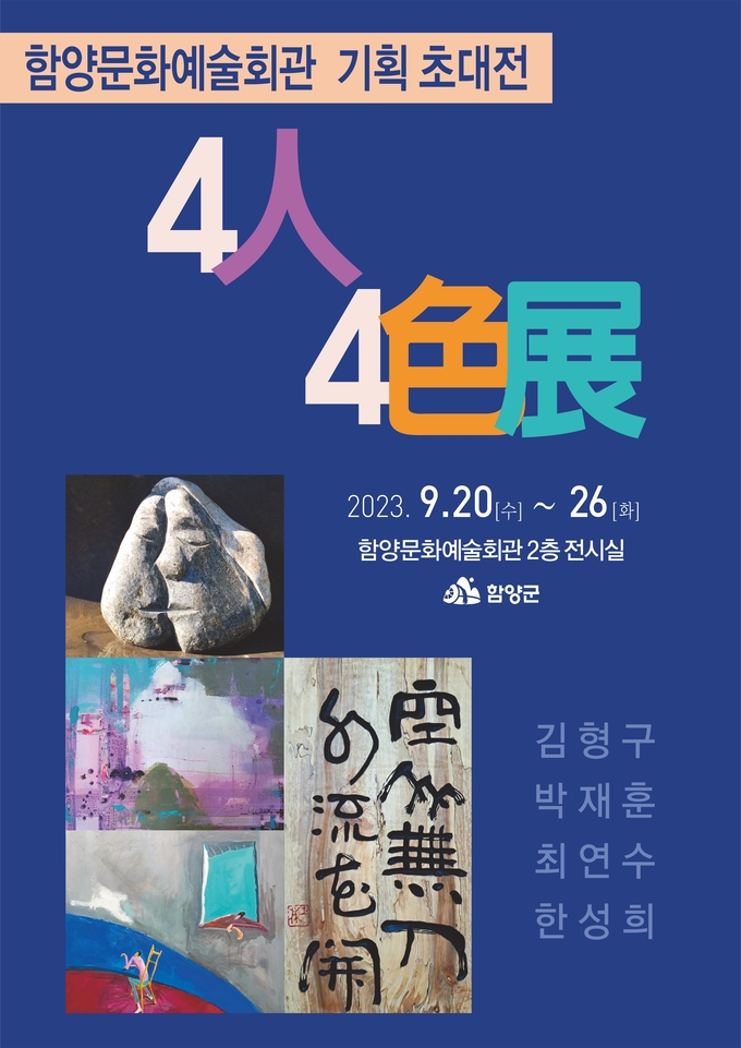 이번 4인4색전은 김형구 조각, 최연수ㆍ한성희 서양화, 박재훈 서각 분야로 함양미협 4명의 작가가 참여하는 전시회로 다양한 시각예술을 한 자리에서 만나볼 수 있는 특별한 전시회가 될 것으로 기대된다.