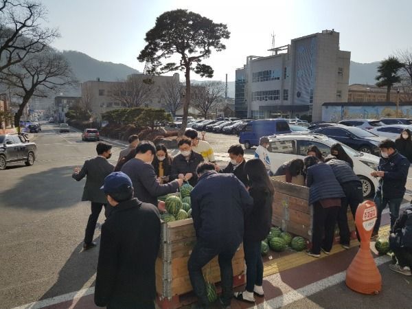 이런 상황에 작게나마 도움이 되기 위해 의령군 직원들이 수박 팔아주기 운동을 전개하여 사흘간 수박400여 통을 소비하였다.
