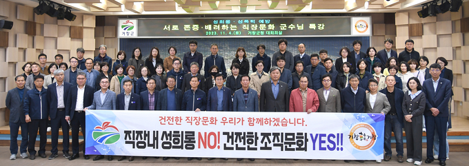 [경남도민뉴스] 거창군은 4일(토) 군청 대회의실에서 간부 공무원, 부읍면장 등 관리자급 공무원 80여 명을 대상으로 ‘성희롱·성폭력 예방, 서로 존중하고 배려하는 직장문화’라는 주제로 특별강연을 시행했다.