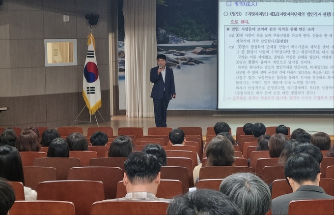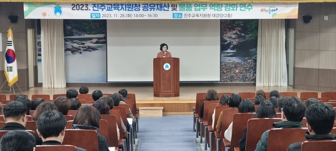 [경남도민뉴스] 진주교육지원청(교육장 이외숙)은 28일(화) 진주 관내 행정실장과 재산·물품업무담당자들을(총 145명) 대상으로 공유재산 및 물품 역량강화 연수를 실시하였다.