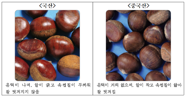 -제공하는 원산지 식별정보는 차례상 제수용품으로 소비가 많은 농산물 중 대추, 밤, 곶감, 도라지, 고사리, 표고버섯 등에 대한 국산과 수입산의 특징과 비교식별 사진이다.