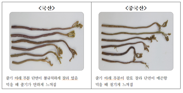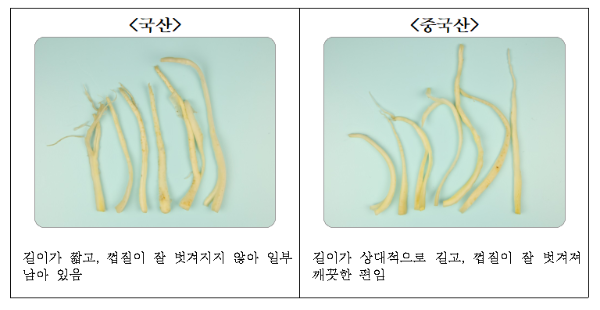 내용: 국산과 외국산(중국산 등) 식별법(육안비교, 특징 등)