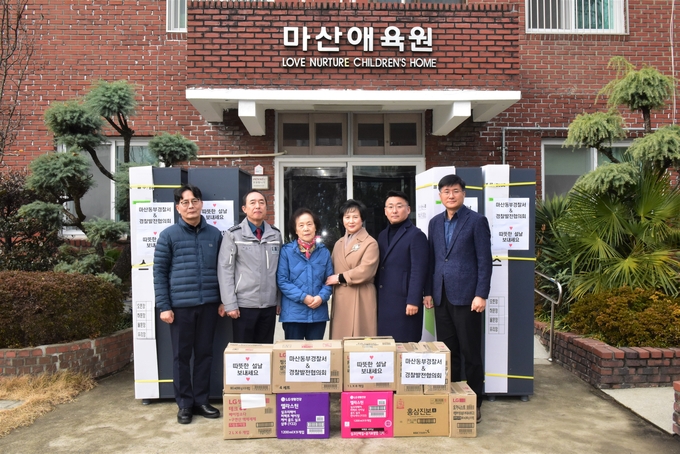 이날 박정덕 마산동부경찰서장과 함께 남천희 경찰발전협의회장이 동행하여 경찰서 직원들의 모금액과 경찰발전협의회에서 후원한 금액으로 생필품 등 사랑의 물품을 전달하였다.