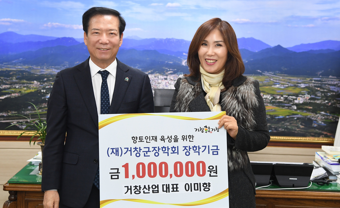 거창산업은 관내에서 지하수 밀폐용 상부 보호공, 농업용 저수지 자동 수위 계측기 등을 제조·납품하는 업체로, 장학금 100만원을 기탁한 이미향 대표는 “우연히 장학회를 알게 돼 지역 우수 인재 육성에 조금이나마 도움을 주고자 장학금을 기탁하게 됐다”고 말했다.