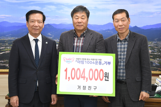 이어 약 800명의 회원으로 구성된 온라인 모임 거창친구도 100만 4,000원을 기부했다.김윤병 회장은 “고향을 사랑하는 마음을 듬뿍 담아 올해도 아림1004운동에 참여하게 되었으며, 따뜻한 마음이 어려운 이웃들에게 전해졌으면 좋겠다”고 말했다.