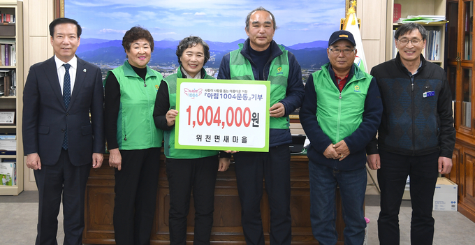 위천면 새마을회는 100만 4,000원을 기부하며 아림1004운동에 참여했다. 신경식 위천면 새마을회장은 “회원들의 마음을 모아 어려운 이웃들에게 도움이 될 수 있는 기부를 하게 되어서 뜻깊다”며 “지속적으로 관심을 가지고 기부에 참여하겠다”고 말했다.