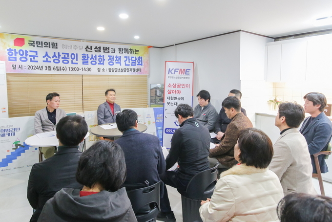 [경남도민뉴스] 신성범 국회의원 예비후보는 6일 함양군소상공인지원센터에서 관내 소상공인들과 소상공인의 애로사항 및 활성화 정책을 위한 간담회를 가졌다.