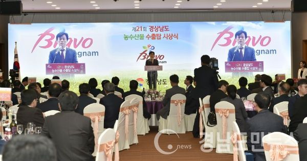 이날 시상식은 조규일 경남도 서부부지사와 경상남도의회 의장, 농해양수산위원회위원장, 시군 단체장 및 부단체장, 농어업 관련 유관기관장을 비롯해 농수산물 수출업체와 생산농가 등 250여 명이 참석했다.