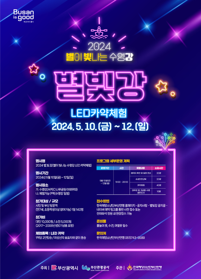 - 수영강 LED카약 체험 프로그램「2024 별빛강 LED 카약체험」
