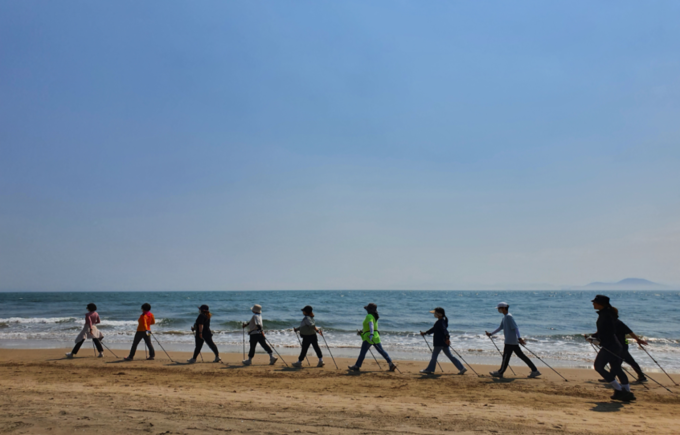 해변어싱 노르딕워킹 : 노르딕워킹용 스틱을 이용한 전신 걷기 운동
