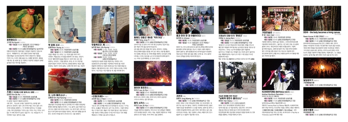 올해 대표작품은 지정남 오월1인극 ‘환생굿’, 김보라 소리극 ‘즈킁’, 한받 이동퍼포먼스 ‘거창한솔로’, 정명자 무용 ‘귀천지’, 라암 쿠마르(인도) 댄스드라마 ‘DEHI’등 이다. 그리고 심야에 황해도 만신 양정이가 ’작두거리’ 굿판을 벌인다.