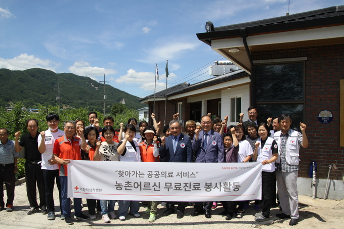 적십자병원의 의료봉사활동은 2006년부터 바쁜 농사일과 거리상의 불편함 등으로 인해 쉽게 병원을 찾지 못하는 면지역 어르신들께 병원 의료진이 직접 마을로 찾아가서 의료서비스를 제공하는 활동이다. 2023년 285명 실시 하였으며 올해 상반기에도 107명 실시하며 어르신들의 건강관리에 만전을 기하고 있다.