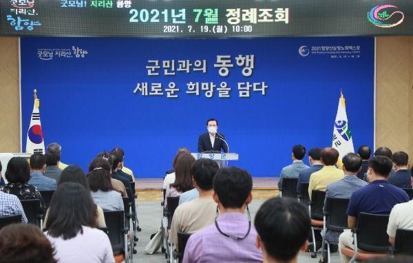 [경남도민뉴스] 함양군은 19일 오전 10시 군청 대회의실에서 서춘수 군수, 강승제 부군수, 간부공무원 및 본청·외청 직원 등이 참석한 가운데 7월 정례조회를 실시했다.