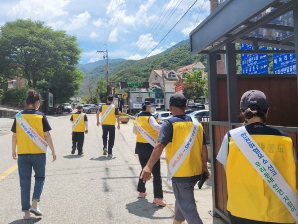 이날 참가자들은 대표적인 계곡인 백무동과 추성계곡 등을 찾은 관광객들에게 코로나19 확산 방지를 위해 물놀이 시 마스크를 착용해 줄 것과 물놀이 사고가 나지 않도록 안전수칙을 준수해 줄 것을 홍보하였다.