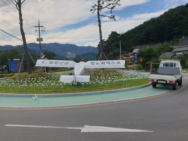 [경남도민뉴스] 함양군 지곡면은 관내 짝쿵엔터테인먼트 유세돈 대표가 지난 23일 2021함양산삼항노화엑스포 홍보를 위해 기증한 경비행기 1대를 홍보효과가 높은 지곡면 회전교차로 중앙에 전시하고 엑스포 홍보문구를 부착하였다.