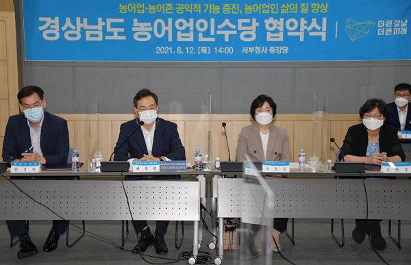 이날 협약식에는 하병필 도지사 권한대행과 18개 시군, 농어업인을 대표해 장진수 (사)한국농업경영인 경남도연합회장, 오우동 (사)한국여성농업인 경남도연합회장, 김성만 전국농민회총연맹 부산경남의장, 김태경 전국여성농민회총연합 경남연합회장, 강경두 (사)한국수산경영인 경남도연합회장 등이 참석해 협약서에 서명했다.
