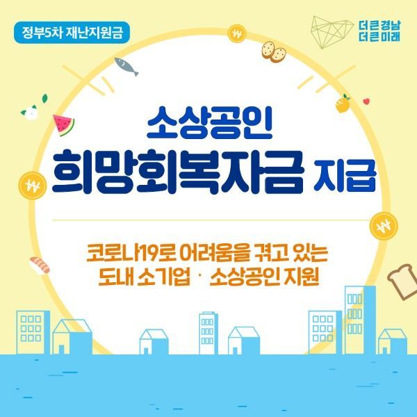 [경남도민뉴스] 경상남도가 8월 30일부터 정부5차재난지원금인 소상공인 희망회복자금 2차 신속지급이 시작된다고 밝혔다.