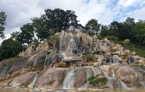 [경남도민뉴스] 함양군은 상림 산삼주제관 인근 필봉산 끝자락에 천연 암반을 이용한 연못, 폭포, 전망대, 천년산삼 조형물로 이루어진 ‘불로폭포’를 완공하였다고 밝혔다.
