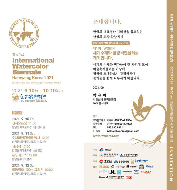 (IWS Korea 회장 박유미)와 ㈔한국수채화협회(이사장 소훈 )가 주관하는 함양비엔날레는 엑스포 기간인 9월10일부터 10월10일까지 31일간 진행된다.