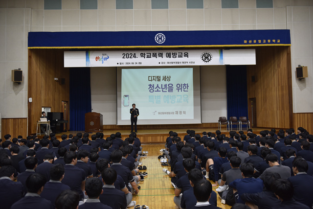 [경남도민뉴스=구인애 기자] 채경덕 마산동부경찰서장은 24.9.24.(화).15:30~16:30까지 마산공업고등학교 강당에서 전교생 481명을 대상으로 「청소년이 안전한 학교생활」이라는 주제로 범죄예방 특별교육을 실시하였다.